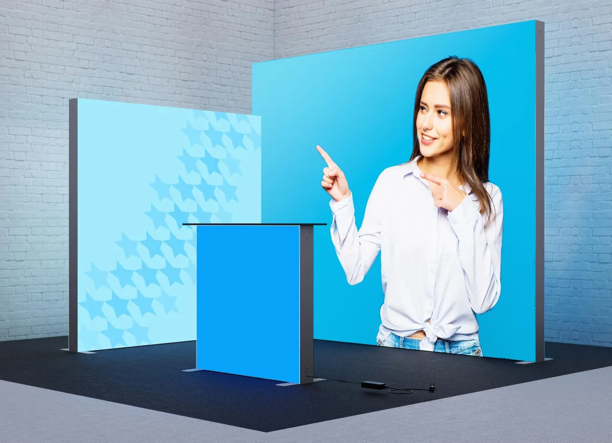 Imagine arriving at the venue and having your display ready in no time, without any special tools or technical know-how. Our frames are designed for convenience; they’re lightweight and snap together with ease, almost like building blocks. Once the frame is up, the fabric graphic, edged with a thin silicone strip, simply pushes into the channel of the frame. In minutes, you’ll have a professional, sleek-looking display that makes your booth look top-notch and inviting to visitors.