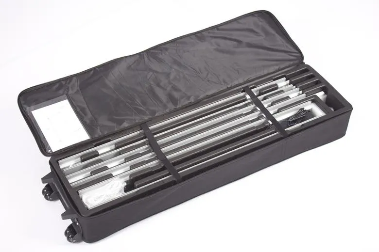Our system fits in a convenient case, you can carry it with you to your show or event. Our frames come on a case with wheels and includes your graphic for your frame.